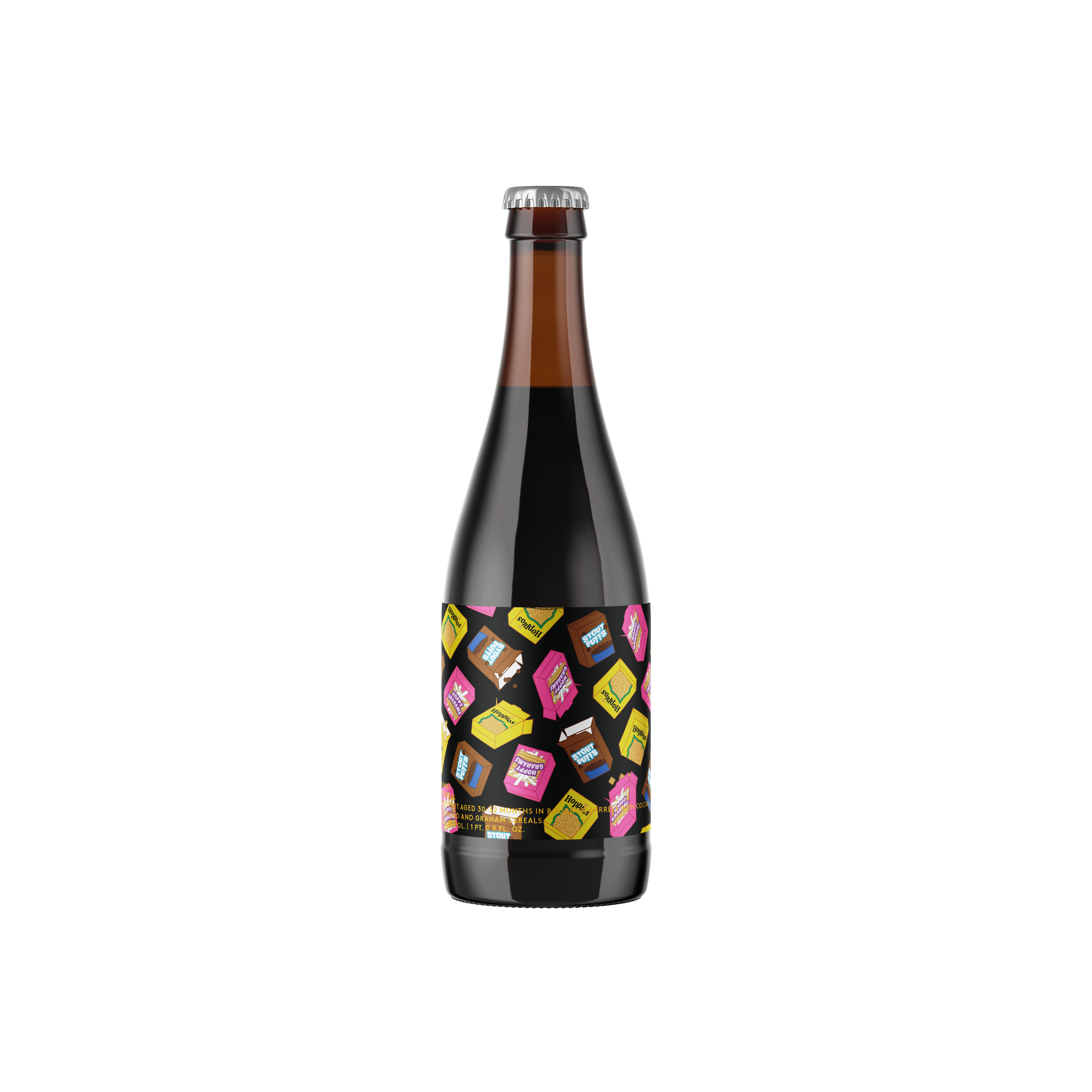 Imperial Stout aged for 30-32 months in Bourbon barrels with cocoa, honey almond, and graham cereals. (12.5%)