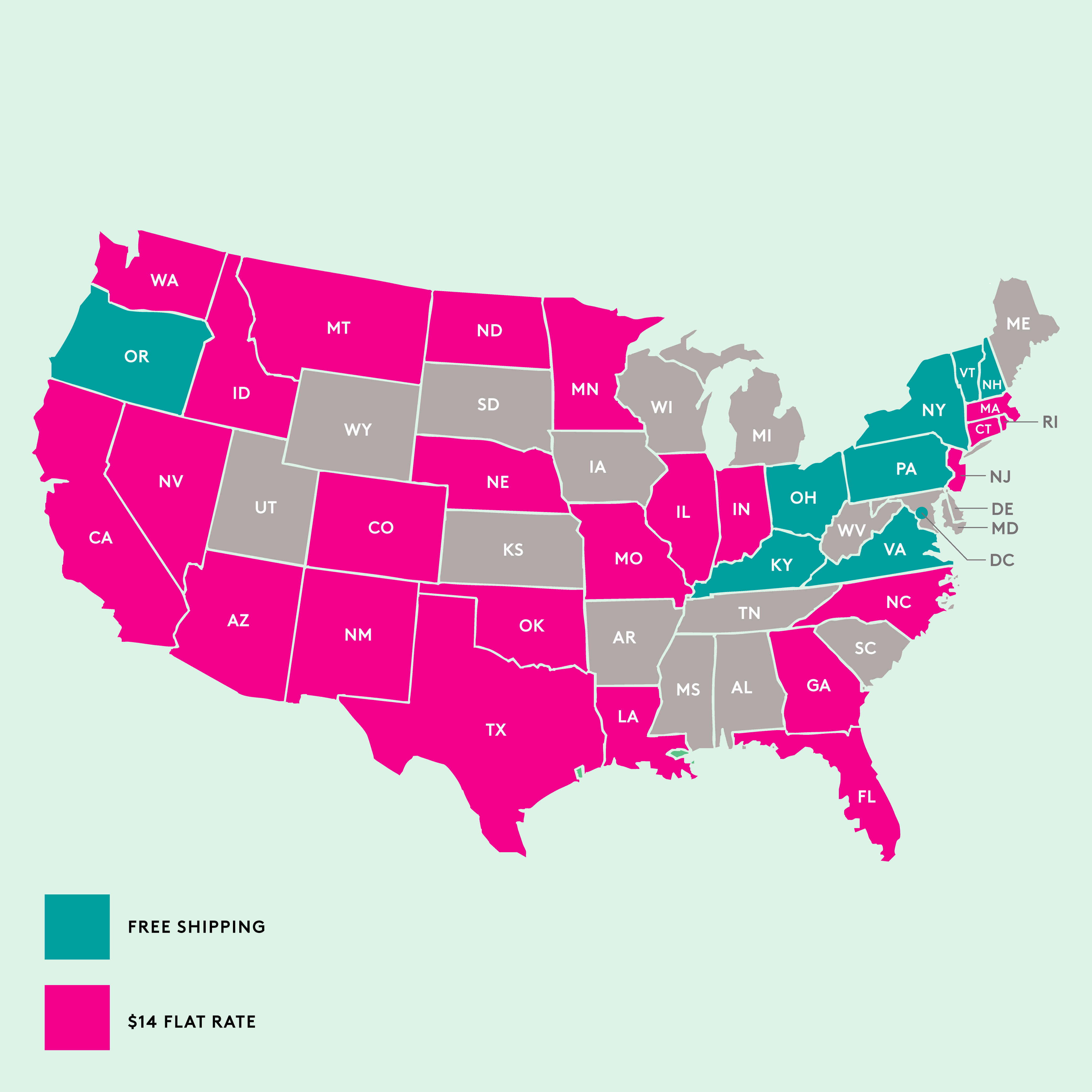 All orders ship out the Tuesday after you place your order. To ensure the shortest times in transit, orders placed after 12 pm (noon) on Monday will be held and shipped out the following Tuesday. There will be a $14 shipping & handling fee per case for these new states due to the addition of 3rd party shipper.