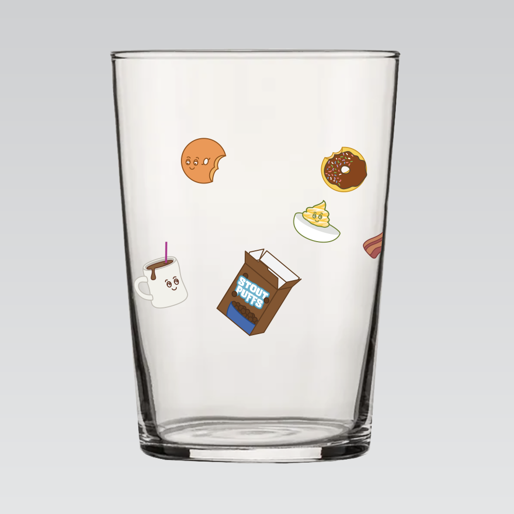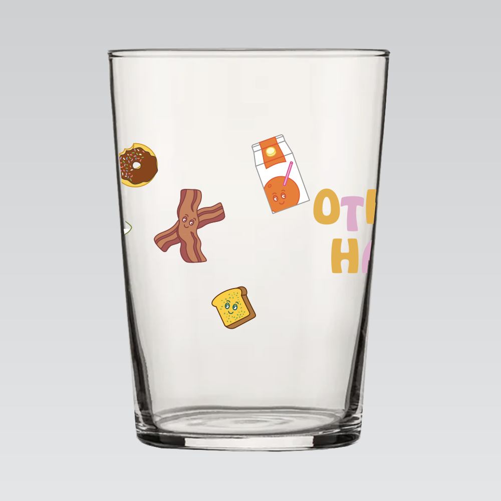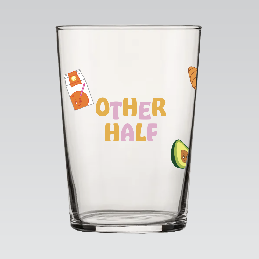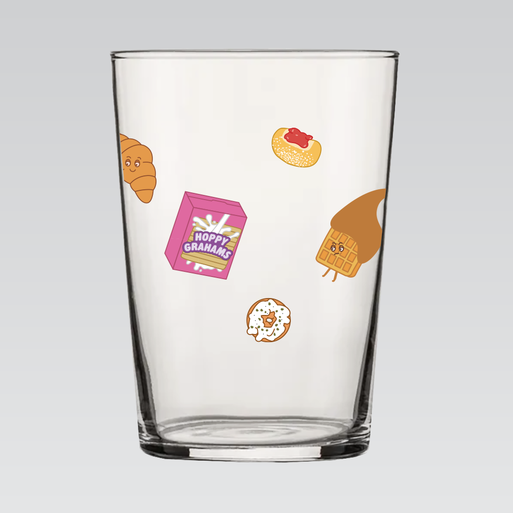 ARC 16.75 oz. Sidra Cocktail Bar Hi-Ball tumbler surrounded by Other Half munchies characters.